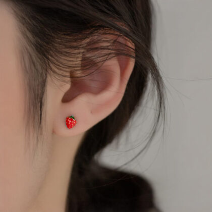 Минималистични обеци от сребро и цветен емайл. Закопчават се с щифт и носят свеж привкус със закачливата си форма на ягодки. Идеално допълнения към лятната визия и прекрасен подарък дори за деца.