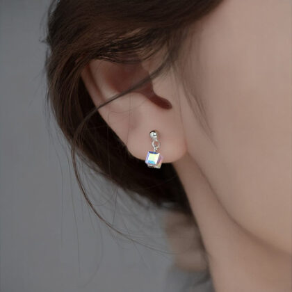 Прецизно изработени обеци от сребро 925. Леки и удобни, поставят се лесно чрез винт и озаряват визията денонощно с многоцветен циркониев камък.