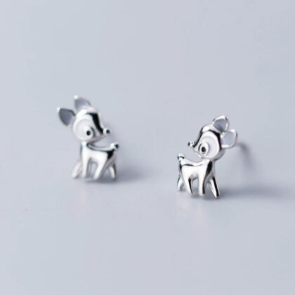 Приказен чифт сребърни обеци, изобразяващ сърнички. Налични са в класическо бяло сребро и в модерната розова позлата. Компактни и леки осигуряват истински комфорт при носене и ще зарадват както големи, така и по-малки госпожици.