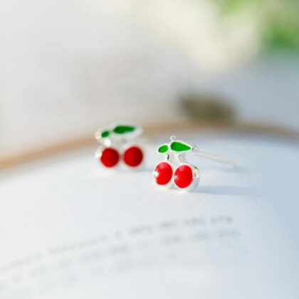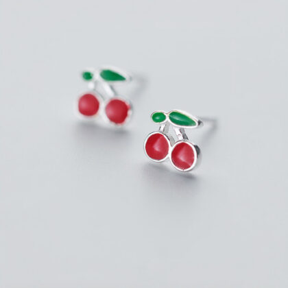 Свежи обеци от сребро, подходящи за летния сезон. Минималистичният модел се откроява с формата на две черешки, красиво декорирани с червен и зелен емайл. Най-доброто допълнение за сладка и ефирна визия.