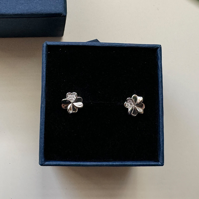 Открий щастието и късмета с четирилистни сребърни детелинки. Идват при теб под формата на красиви сребърни обеци по ухото. Поставят се бързо и лесно чрез винт и блестят деликатно на дневна светлина. За повече детайлност и красота, едното от листенцата на растението е инкрустирано с малки камъчета. Украшенията могат да бъдат подарени за всеки празник, като израз на нестихващ успех и благополучие.