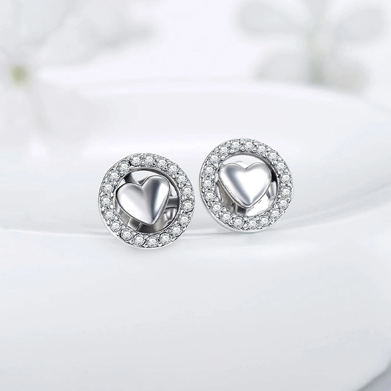 Уникални за романтичен подарък са обеците от сребро 925. Те се поставят чрез винт и съчетават кръгла основа, покрита с множество блещукащи камъни и сребърното сърце по средата, което допълва съвършенството. Бижутата са символ на чиста и всеотдайна любов, затова са идеални за любимата жена, за дъщеря или майка.