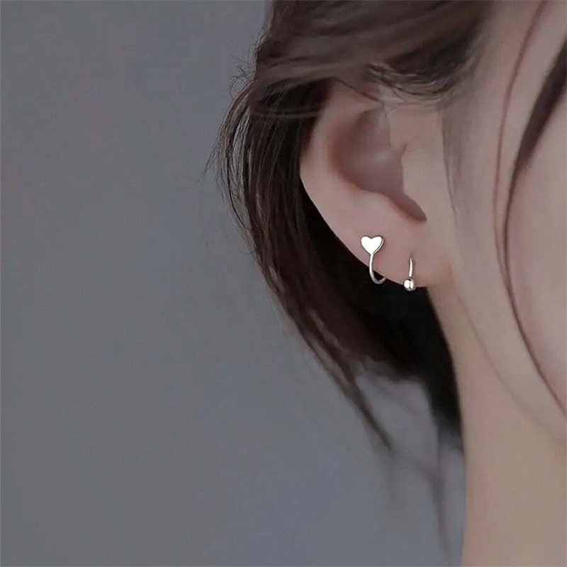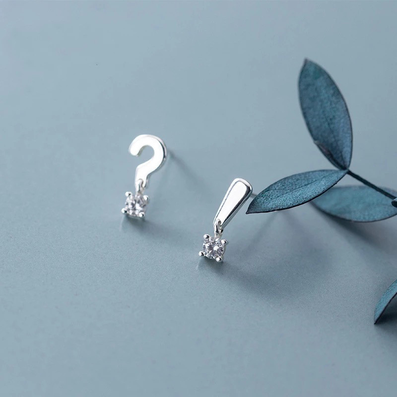 Интересен модел от сребро и малък блестящ камък. Дизайнът е вдъхновен от модните тенденции за носене на две различни по вид обеци. Минималистичните им форми ги правят комбинативни и с други бижута.