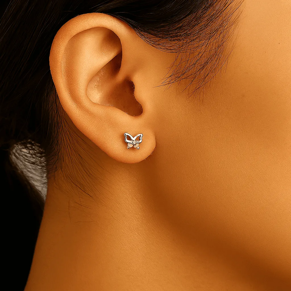 Нежни сребърни обеци с форма на пеперуда, украсени с блестящи камъчета от цирконий за изискан блясък. Символ на красота и свобода, тези обеци са изработени от висококачествено хипоалергенно сребро, което ги прави безопасни и удобни за ежедневно носене.