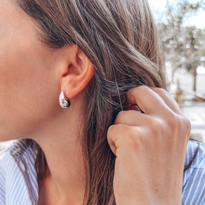 Сребърни обеци с дизайн във формата на стилизирана капка, тези обеци са перфектният завършек на всяка визия — от деловата до вечерната. Създадени за жената, която цени стил, изчистени линии и модерно излъчване.