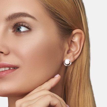 Тези сребърни обеци съчетават класиката на перлата с модерна интерпретация на формата – деликатен отворен кръг, обгръщащ централната перла с мекота и симетрия. Финото сребро подчертава естествения блясък на перлите, създавайки впечатление за съвършен баланс.