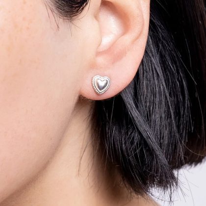 Елегантни обеци от сребро проба 925 с форма на сърце и фин релефен контур. Изчистеният дизайн и деликатният блясък ги правят подходящи за ежедневно носене и лесни за съчетаване с всякакъв стил. Предлагат се в сребрист и златист цвят и са отличен избор за нежен подарък с универсално послание.