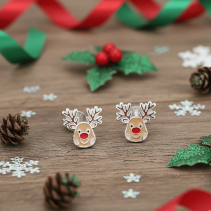 Изработени от висококачествено сребро проба 925 и оцветени с емайл в нежни кафяви и червени тонове, тези обеци са идеалният аксесоар за празничния сезон. Леки, удобни и забавни, те носят усмивка и коледен дух на всяко малко личице.