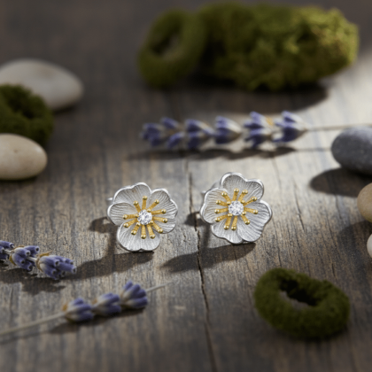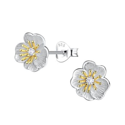 Изящна нежност, вдъхновена от природата – тези сребърни обеци с форма на цвете ще добавят деликатен блясък към всеки тоалет. Изработени от сребро проба 925 и украсени със златисти тичинки и централен цирконий, те съчетават класика и женственост в съвършен баланс.