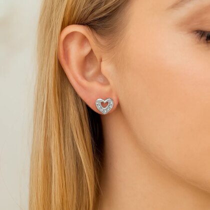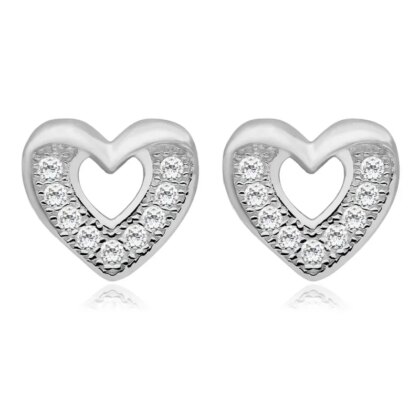 Нежни сребърни обеци с форма на сърце, украсени с блестящ камък, който придава изискан блясък. Изработени от висококачествено хипоалергенно сребро, те са леки, удобни и подходящи за ежедневно носене.