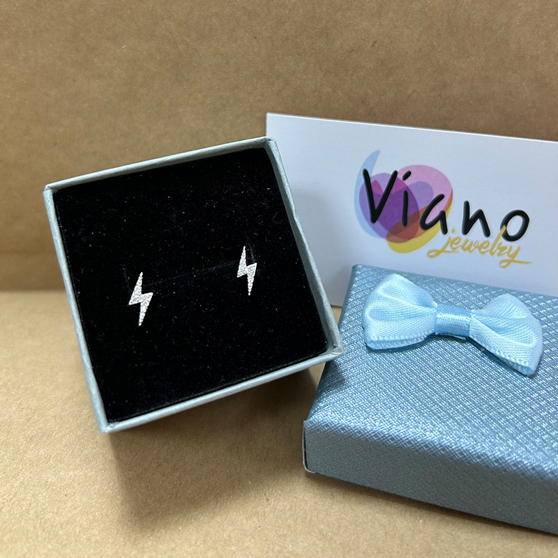 Тези изискани обеци са изработени от сребро и са оформени като мълнии. Те са инкрустирани с кубични цирконии, които придават елегантен блясък и привличат погледите. Обеците са малки и деликатни, идеални за ежедневно носене или за добавяне на акцент към вашия вечерен тоалет.