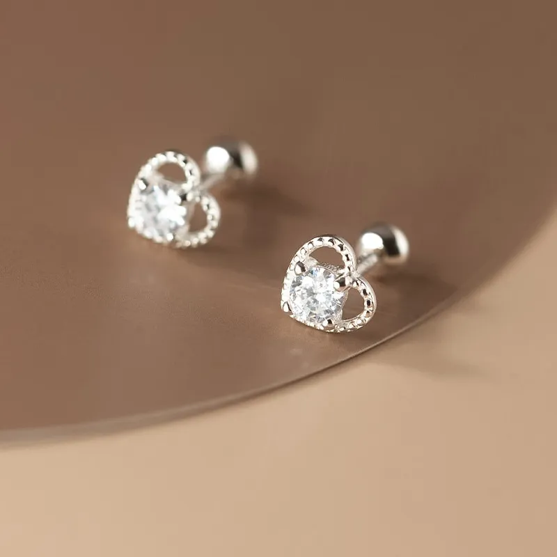 Изискани сребърни обици, представляващи сърце, приютило бляскав камък. Дизайнът им веднага привлича погледа, но същевременно е и достатъчно деликатен, за да се впише и в ежедневния стил. Бижутата са подходящи са за всякакви поводи и лесно могат да се комбинират с тематични гривна или синджир.