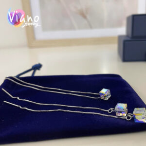 Комплектът включва колие във формата на кубичен цирконий, който прелива в множество цветове. Към комплекта са добавени дълги обеци, също украсени с кубични цирконий, които създават същия многоцветен ефект. Подходящ за специални поводи и придава изискан и модерен акцент към всяка визия.