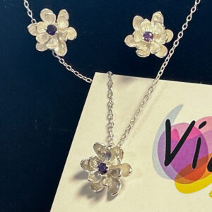 Комплект от сребро проба 925 включва висулка и чифт обеци. Елегантен и изискан, идеален за жени, които обичат бижута с природни мотиви.
