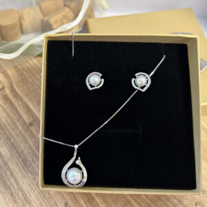 Това е изискан комплект бижута, включващ колие и обеци, предназначен да добави класическа елегантност към всяка визия. Комплектът е изработен от висококачествено сребро и изкуствени перли, което го прави перфектен избор за специални поводи. Идеален за подарък или за носене на събития като сватби, официални вечери или важни тържества, където всяка дама би искала да изглежда ослепително и стилно.
