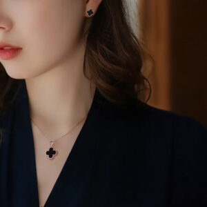 Този елегантен комплект бижута е създаден за дамите, които ценят финеса и изяществото. Включва колие и обеци в розово злато с изящен дизайн. Перфектен за специални поводи или като изискан акцент към ежедневната ви визия, този комплект ще ви придаде увереност и ще ви накара да се чувствате уникална.