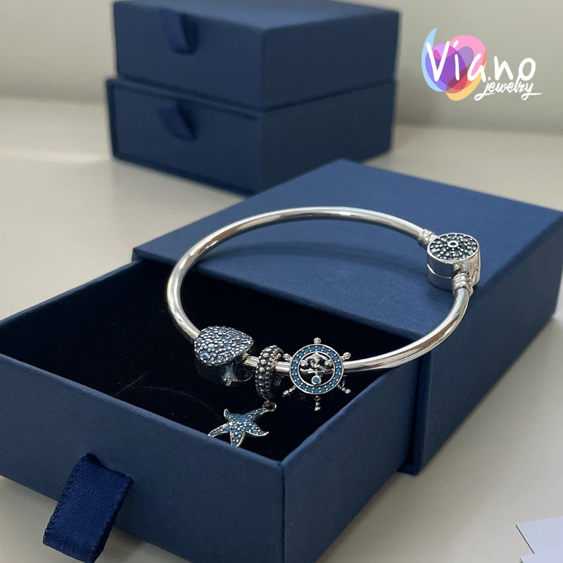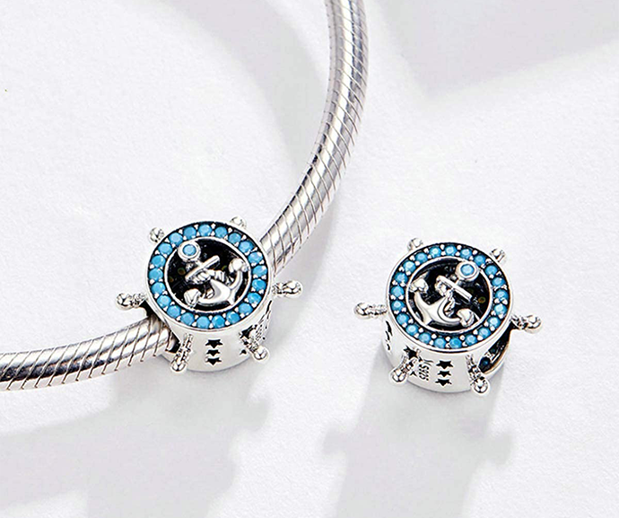 Изработен от сребро и фино инкрустиран със сини камъни цирконий, този талисман е чудесен избор за летен подарък. С форма на рул, а в центъра с малка сребърна котва, бижуто носи в себе си духа на морето и вдъхновява за пътешествия и приключения.