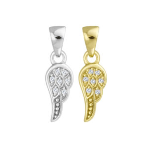 Понеси се в света на светлината и нежността с тази изящна сребърна висулка във форма на ангелско крило. Изработена от висококачествено сребро проба 925 и украсена с бляскави циркониеви камъни, тя символизира закрила, вяра и вътрешна сила. Перфектен подарък за любими хора или като личен талисман, който да напомня, че винаги има светлина около нас. Съчетава се елегантно с фина верижка и подхожда както за ежедневна визия, така и за специални поводи. Предлага се и в позлата.