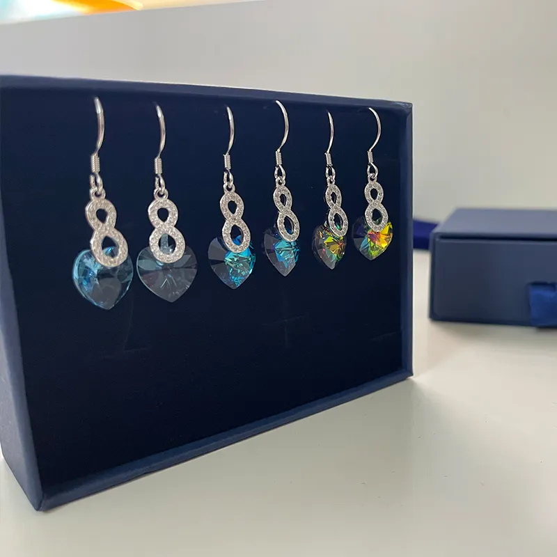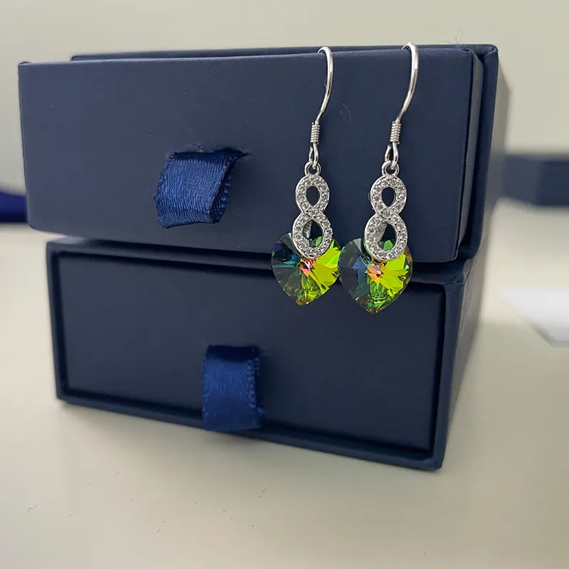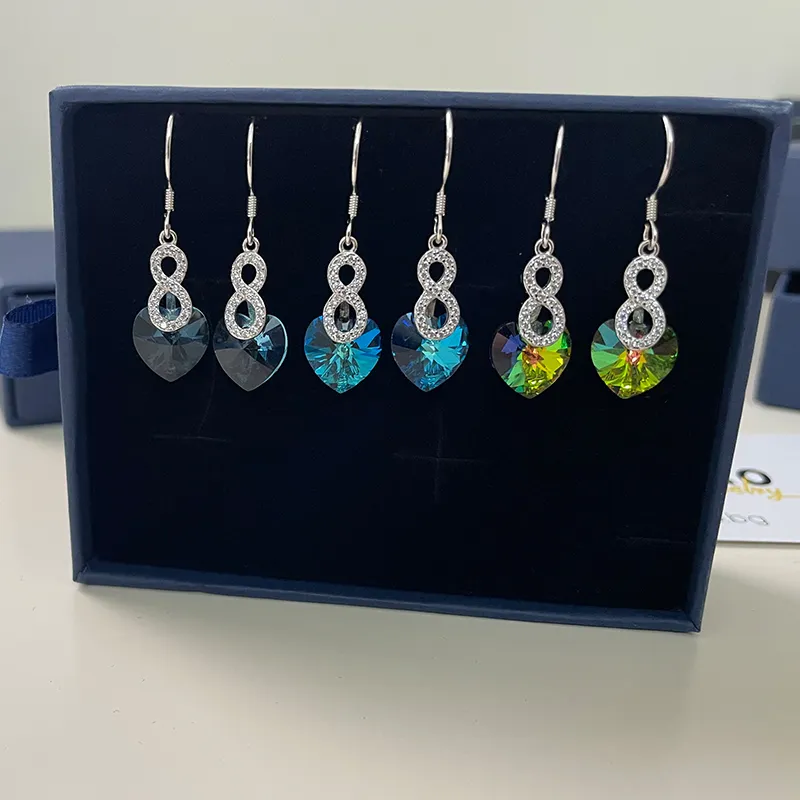 За кого се сещаш, когато видиш сърце? Тези бляскави обеци от сребро и кристали Swarovski в няколко цвята напомнят за любовните искри, а висулката символ на безкрайността напомня, че истинската любов е непреходна. Обеците са чудесен начин да покажеш на любим човек колко го цениш и обичаш. Комбинирай ги и с други тематични модели от нашата колекция сребро и кристали Swarovski.