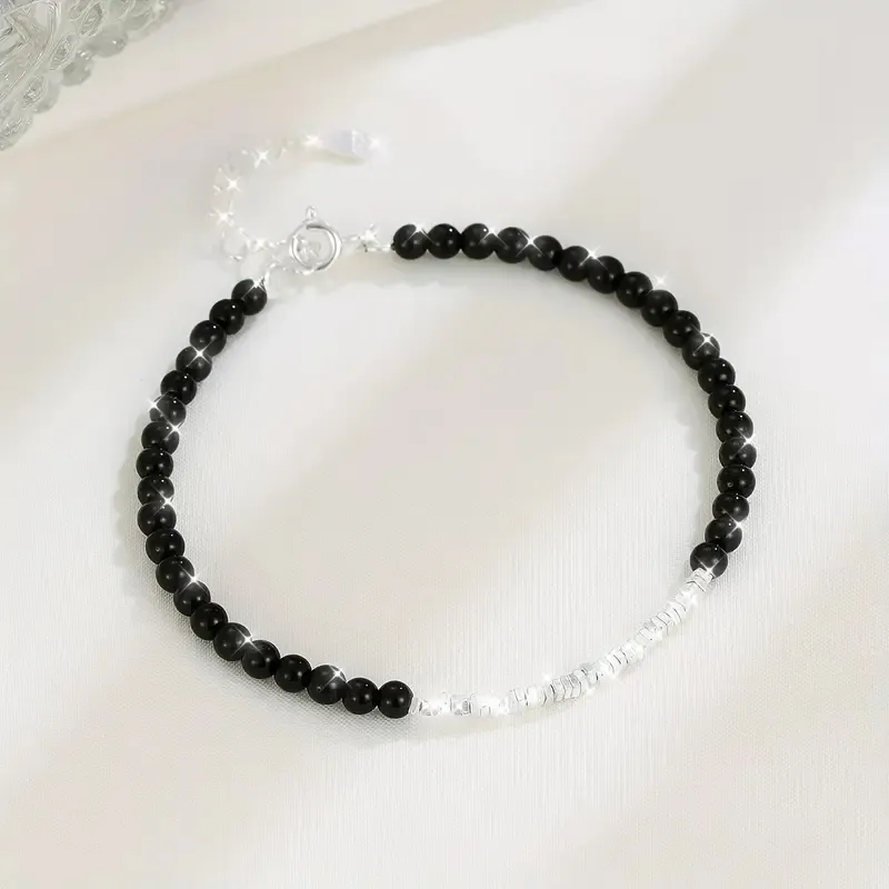 Излъчваща сила и елегантност, тази гривна е изработена от естествени мъниста, комбинирани с фини сребърни елементи за изтънчен контраст. Лека и стилна, гривната се адаптира към всяко ежедневие или специален повод. Перфектен избор за подарък или лично вдъхновение.