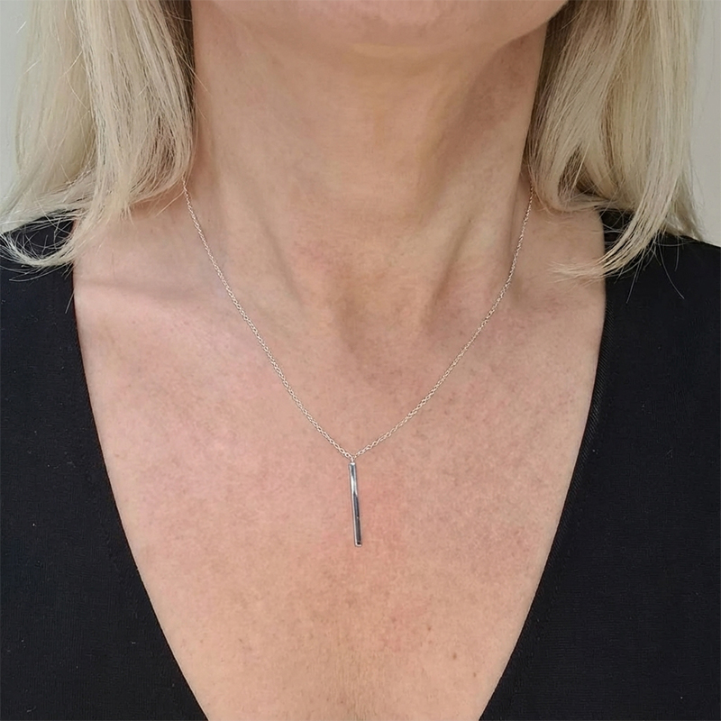 Символ на чистота, баланс и съвършен минимализъм — това сребърно колие с прав бар-пендант е създадено за дамите, които ценят изчистената елегантност.
