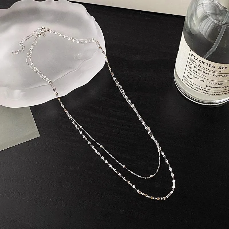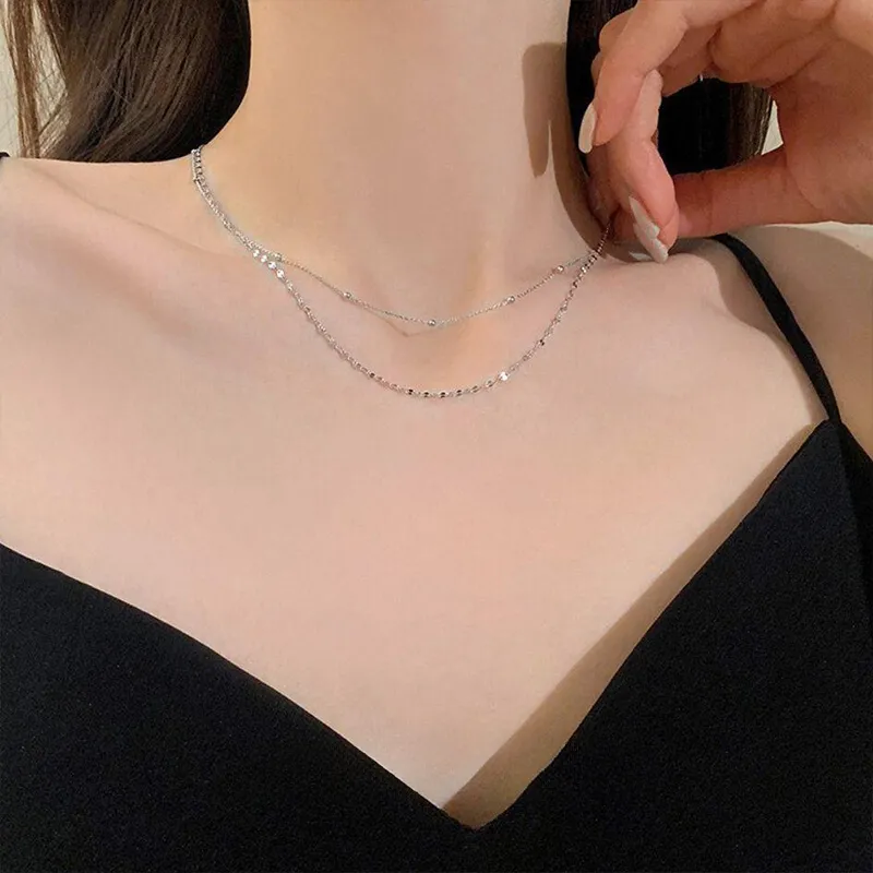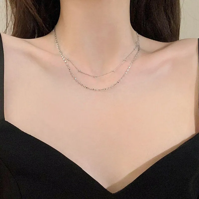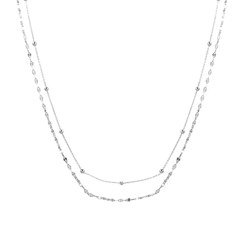 Фино колие от сребро 925 с елегантен двоен слой и нежни декоративни елементи. Минималистичният дизайн с малки сребърни топчета и деликатни звена придава усещане за стил и изтънченост. Подходящо за ежедневие или специални поводи, това колие е универсален аксесоар, който допълва всяка визия с лекота и блясък.