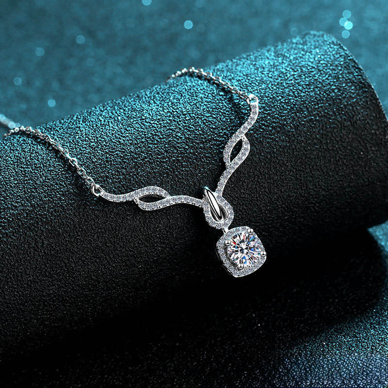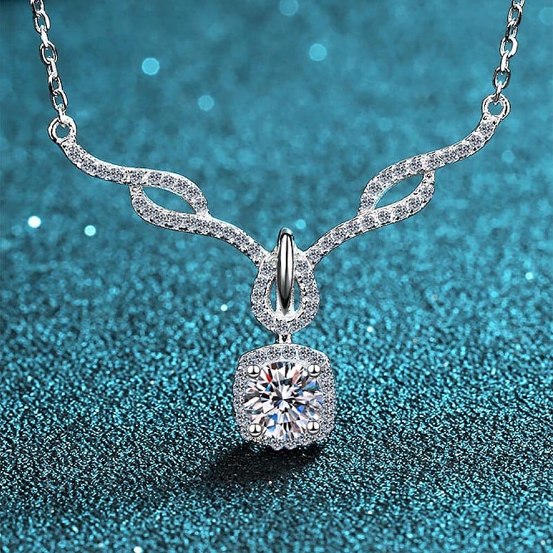 Този изискано колие е истински шедьовър на изтънчения дизайн. Централният мойсанит с квадратна форма блести като капка светлина, обгърната от нежна рамка с инкрустирани кубични цирконий от най-висок клас. Това бижу е символ на стил и красота, който ще подчертае вашата индивидуалност и изящество.