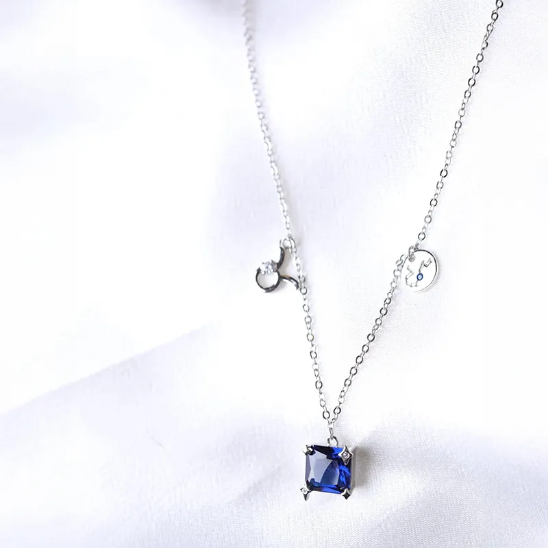 Това елегантно колие в сребрист цвят съчетава символа и съзвездието на зодия Телец с дълбок син камък в класическа форма. Идеално бижу за родените под знака на стабилността и земната сила – стилен начин да покажеш коя е твоята зодия със значение. Отличен избор за личен талисман или подарък, вдъхновен от звездите.