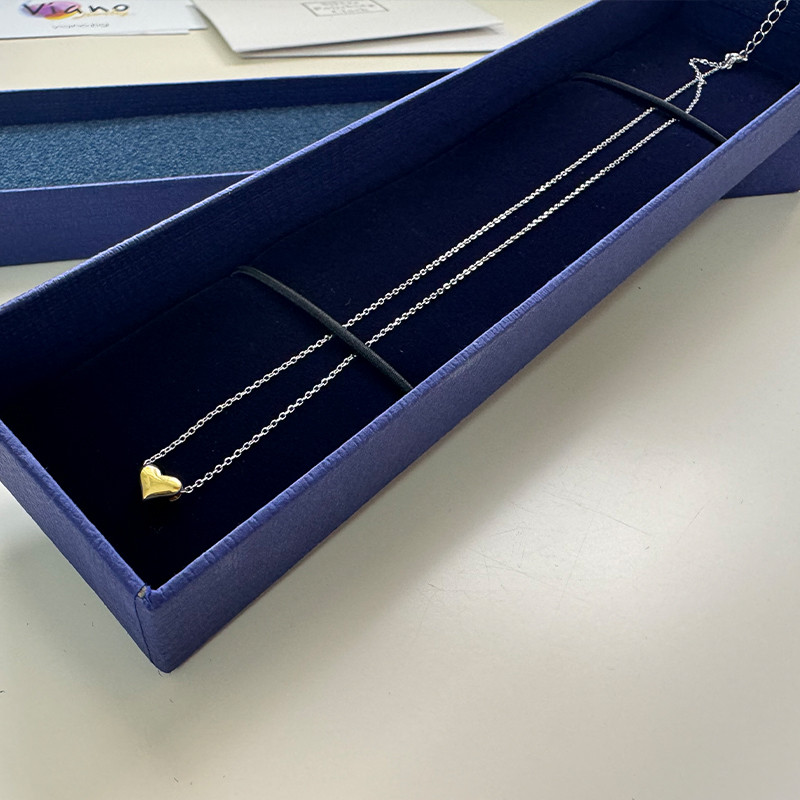 За дамата в живота ти с добро сърце, на която искаш да изпратиш чиста любов – подари изящно колие от сребро. Верижката е под формата на нежна плетка Класик, а фокусът е насочен към красиво сърчице от жълто сребро. Хармоничната комбинация изглежда чудесно и позволява да се съчетава с различни по вид сребърни и златни бижута. Колието може да бъде идеалното за подарък за Свети Валентин, за 8 март, за рожден ден или годишнина.