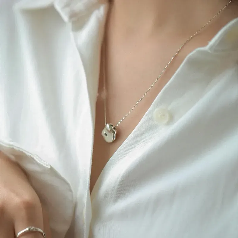 Този елегантен комплект включва обеци и колие със съвременен, артистичен дизайн. Нежните форми и огледалният блясък на среброто придава изтънченост и стил. Идеален избор за модерна и уверена визия.