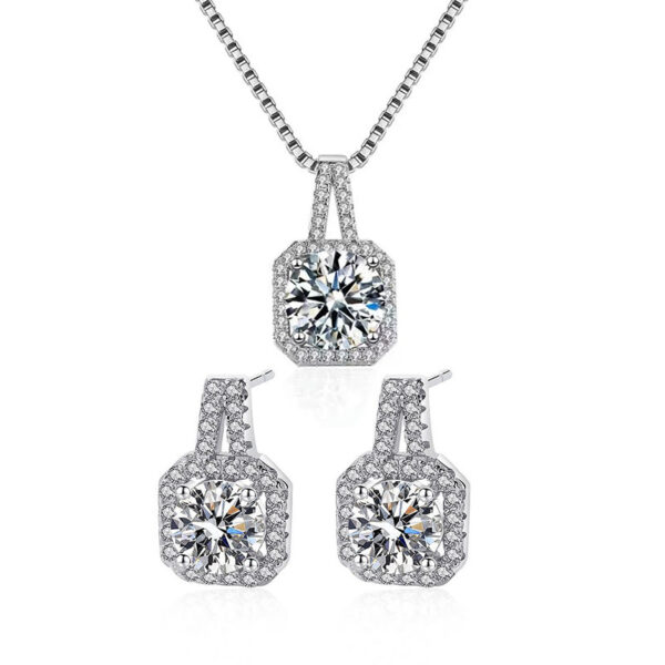 Изискан комплект, съчетаващ нежно сребро и прецизно инкрустирани блестящи мойсанити, който включва елегантни обеци и изящно колие. Дизайнът подчертава индивидуалността и добавя нотка на лукс към всяка визия. Перфектен за специални моменти. Подарете си или на вашата любима красота, която впечатлява!