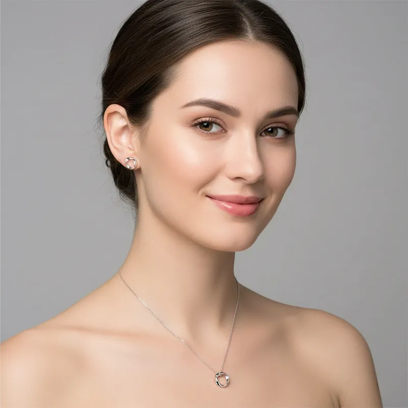 Съчетание от минимализъм и модерна визия. Комплектът включва фино изработени обеци и колие с усукано сребристо покритие – символ на безкрайна елегантност и хармония. Идеален за подарък или за завършек на вашата ежедневна и вечерна визия.