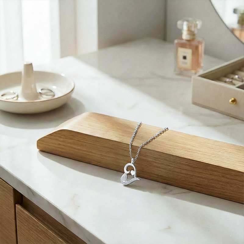Нежно сребърно колие, олицетворяващо най-чистата и безусловна любов – тази между майка и дете. Фината форма изобразява прегръдка, вградена в стилизирано сърце, украсено с блестящи циркони, които придават мек блясък и емоционална дълбочина. Това бижу е повече от аксесоар – то е символ на топлина, грижа и безкрайна обич. Идеален подарък за майка – за рожден ден, Коледа, или просто за да изразите благодарност.