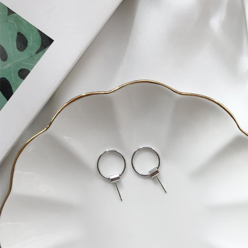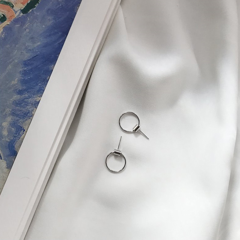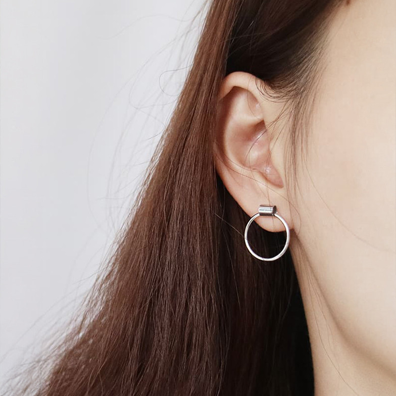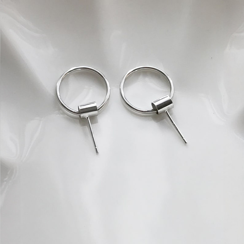 Изчистени обеци от сребро на винт със спускащи се по ухото халки. Класически модел подходящ за всеки повод и вкус.