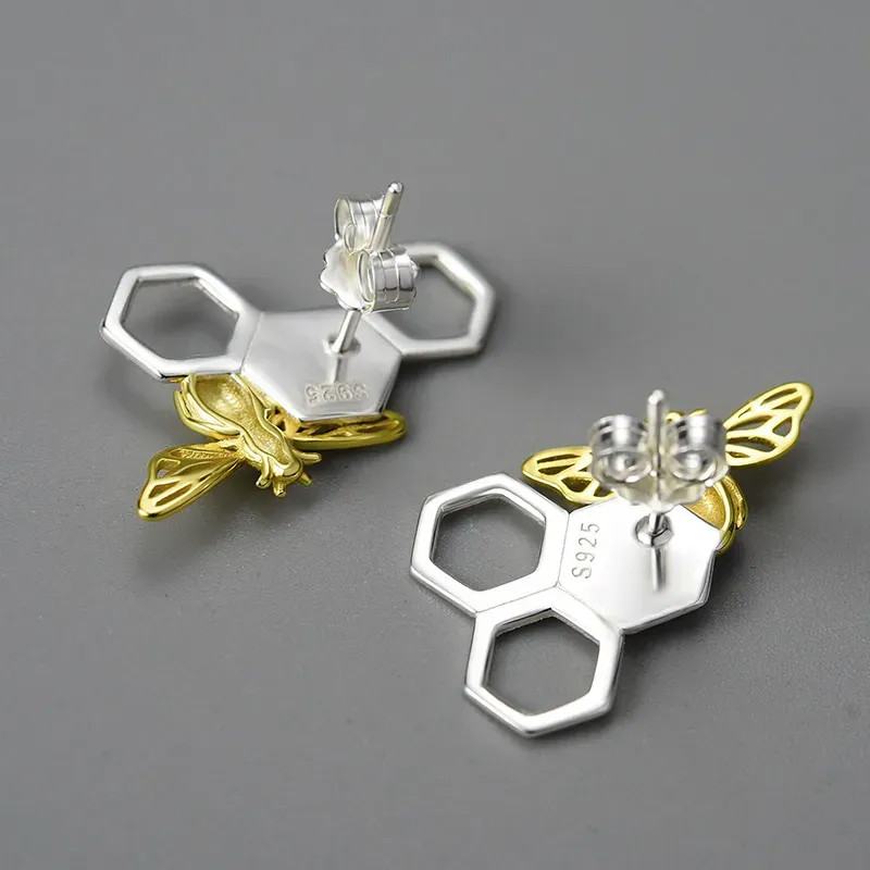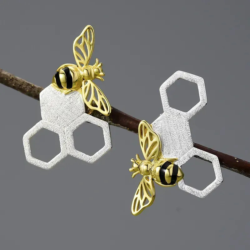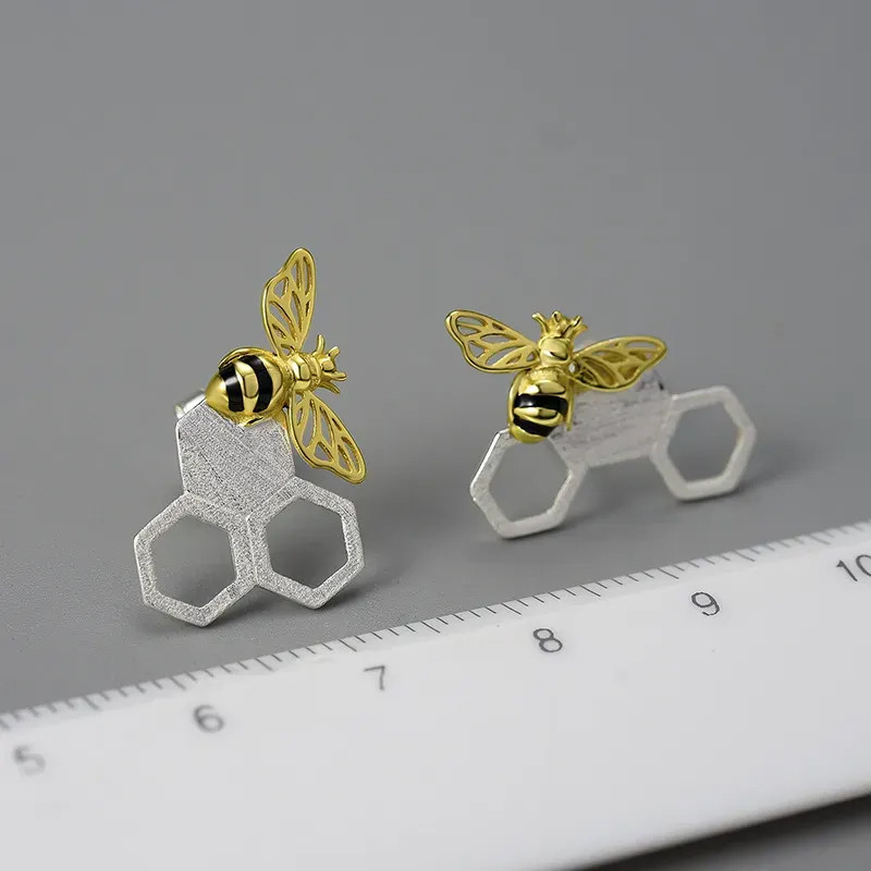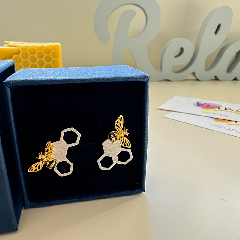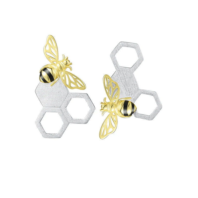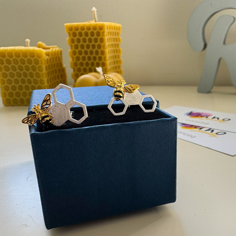 Пчелите са символ на трудолюбие, а медът – на изобилие. Тези послания носят и обеците от сребро с винт, олицетворяващи пчели върху медена пита. Животните са със златисто покритие и черен емайл, което дава възможност да бъдат съчетани с различни по вид бижута и тоалети. Привнеси бижутата към собствения си стил или подари на жена с пожелания за меден живот, пълен с изобилие.