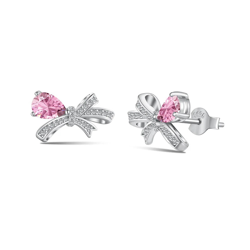 Грациозни обеци по ухото, които очароват с форма на панделка и малко розово сърце от цирконий. Изработени изцяло от сребро, пристигат бързо със сертификат за качество и подаръчна опаковка.
