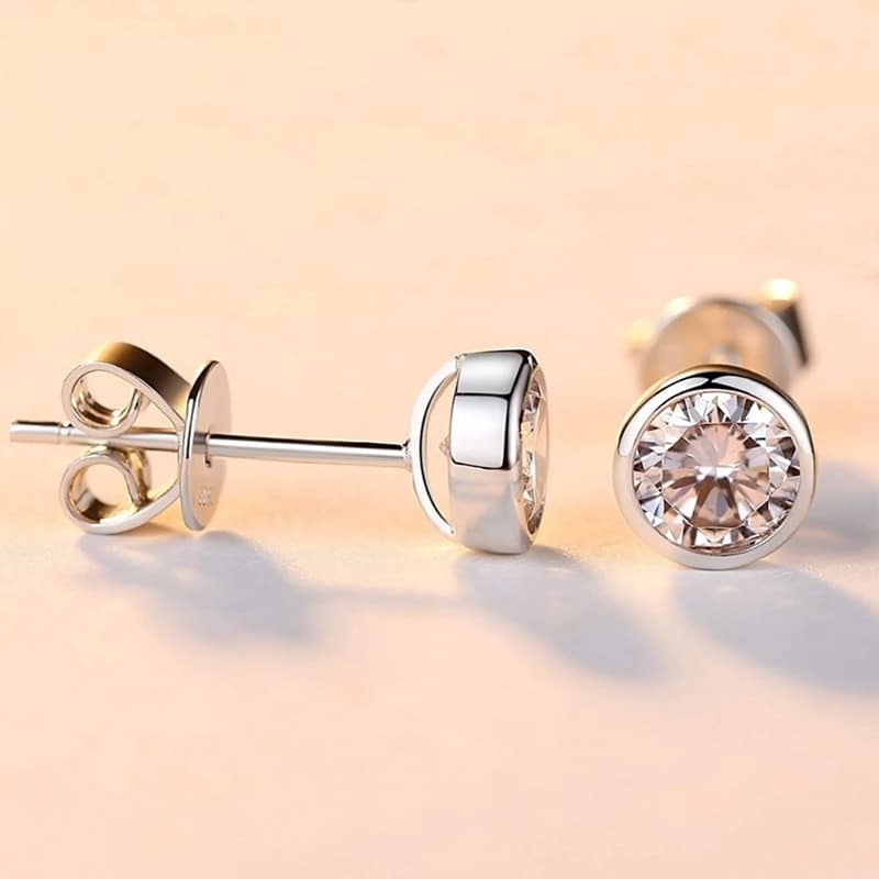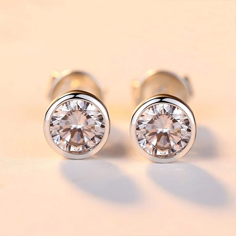 Тези обеци въплъщават чистотата на формата и красотата на изчистения дизайн. Кръглият мойсанит е перфектно обграден от сребърна рамка, която подчертава неговия ослепителен блясък. Това са бижута, които говорят за минимализъм и стил, добавяйки изтънченост към всяка визия. Перфектни за всеки повод, те са символ на непреходната елегантност и светлината, която винаги ще ви съпътства.