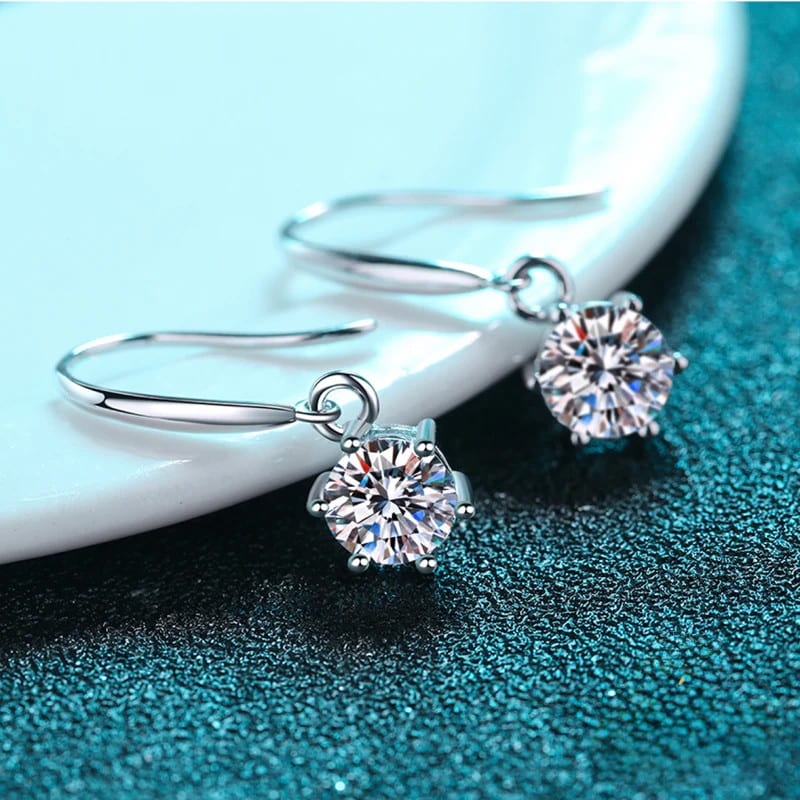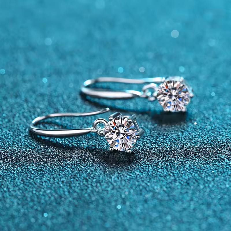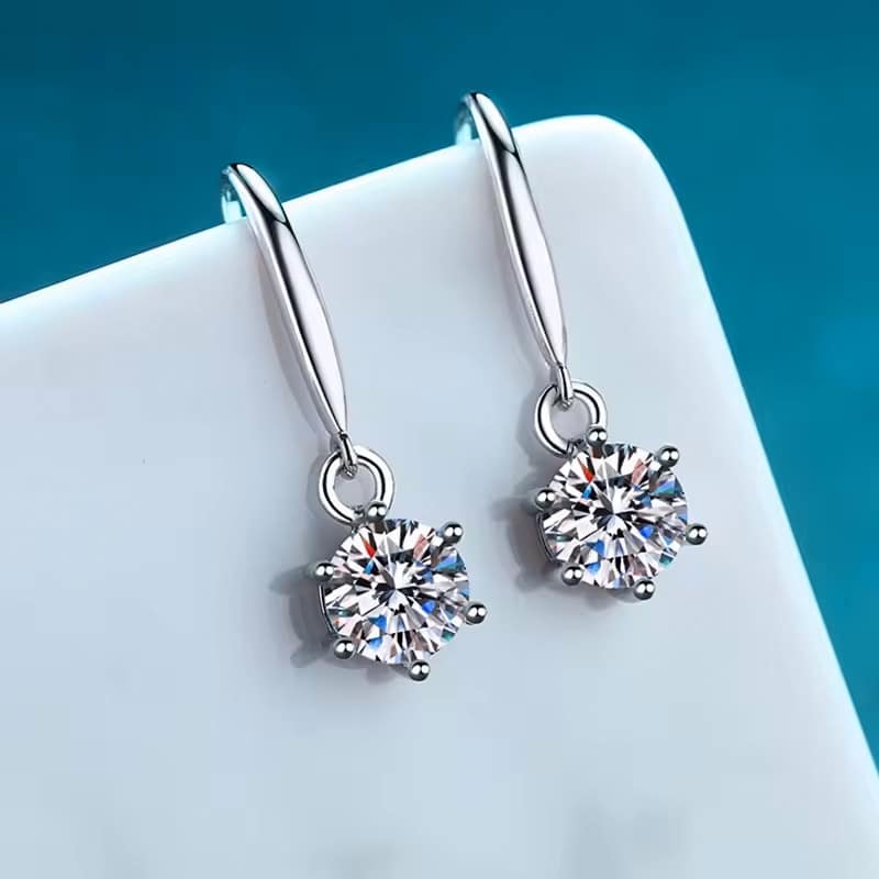 Тези нежни и елегантни висящи обеци съчетават изчистен сребърен дизайн с изключителния блясък на мойсанит. Камъните са красиво подредени, за да подчертаят естественото движение и светлината, която ги обгръща. Те са перфектното допълнение към всяка визия – от ежедневна изисканост до специални поводи. С тях ще добавите финес, стил и сияние към всяко облекло, подчертавайки вашата идентичност и чар.