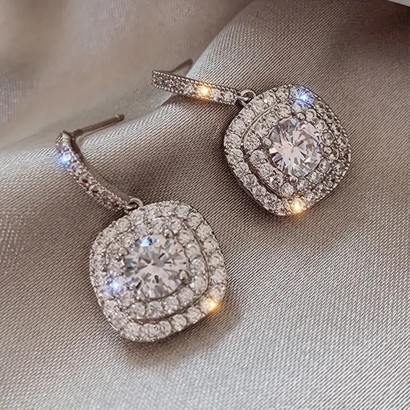 Тези изискани висящи обеци са съчетание на класика и модерна изтънченост. Изработени от сребро и украсени в центъра с мойсанит, заобиколен от редици блестящи камъни, те създават ефект на ослепителен лукс. Идеални както за официални поводи, така и за специални вечери. Бижу, което излъчва класа и привлича всички погледи.
