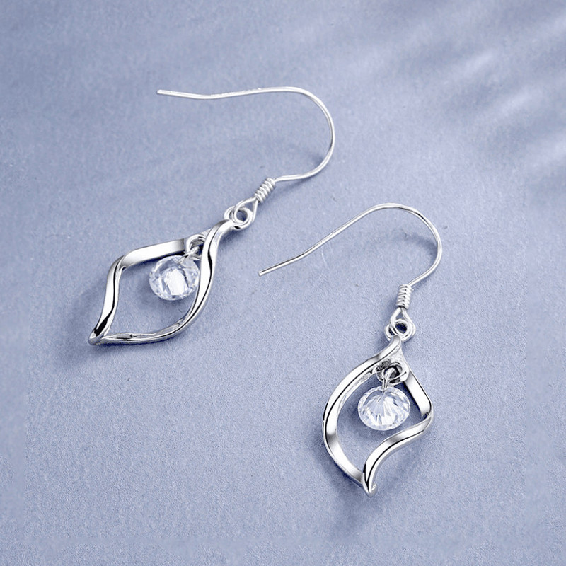 Висящите сребърни обеци се захващат към ухото чрез един от най-удобните варианти – кукичка. От нея се спуска сребърна спирала, която се връща в изходно положение. По средата е позициониран и голям кръгъл цирконий. Комбинацията от всички тези елементи дава усещане за хипнотизация от сребърна красота, която може да бъде комбинирана с други по вид бижута или носени самостоятелно. Изящните обеци могат да бъдат и подарени на всяка жена, омайваща с чар.