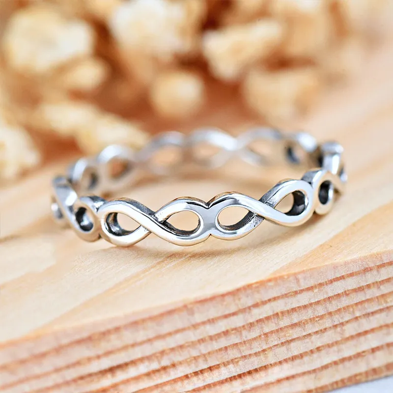 Елегантен сребърен пръстен от висококачествено сребро 925, изграден от повтарящи се символи на безкрайността. Той е израз на вечна любов, хармония и връзка, която никога не свършва. Подходящ както за ежедневие, така и за специални моменти, този пръстен е перфектният избор за подарък с дълбоко послание.