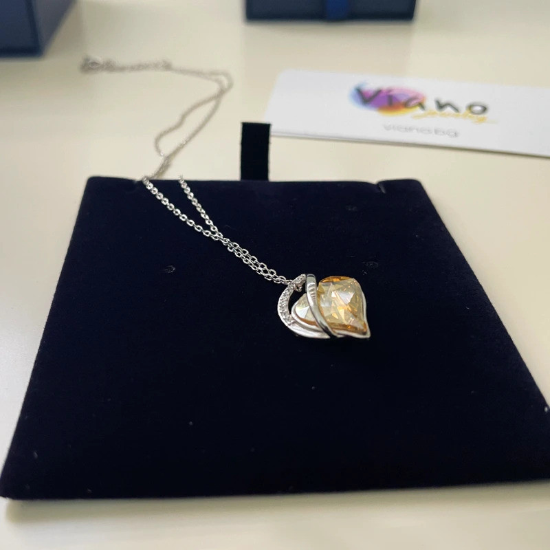 Позволи на любовта да те озари всеки път, когато носиш сребърното колие с висулка сърце. Бижуто е изработено от плетка Класик, а към нея е захванат сребърен талисман във форма сърце. Рамката му е с декорация от цирконий, а вътрешността му е запълнена с голям кристал Swarovski, който блести красиво както на дневна светлина, така и вечерта. Това му позволява да бъде носено на официални поводи като коледно или новогодишно парти, празненство за рожден ден или Деня на влюбените, или просто да допълва ежедневния ти шик.