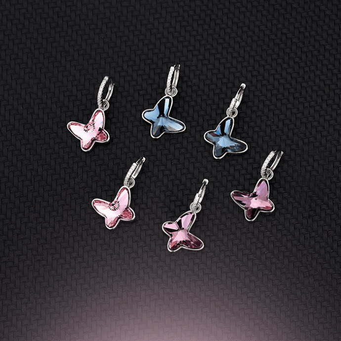 Красива пеперуда от кристал Swarovski, която ще добави свежест, блясък и настроение в излъчването ти. Просто позволи на обеците от сребро и кристали Swarovski да засияят върху теб и се наслади на красотата им. Бижутата веднага ще ти станат любими, защото са едновременно семпли и модерни. Формата на пеперуда пък е запълнена от блестящ кристал в различни цветове, който ще ти позволи да ги комбинираш с любимата си рокля. Носи ги самостоятелно или съчетай със същото сребърно колие от сребро и Swarovski.