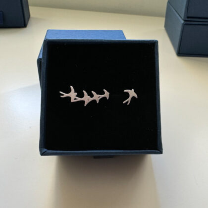 Да видиш бяла лястовица се смята за голям късмет. Представи си колко щастие ще донесат няколко от тези нежни крилати чудеса! Привнеси ги във визията си под форма на сребърни обици, символизиращи грация и свобода, или направи подарък на любимата жена.