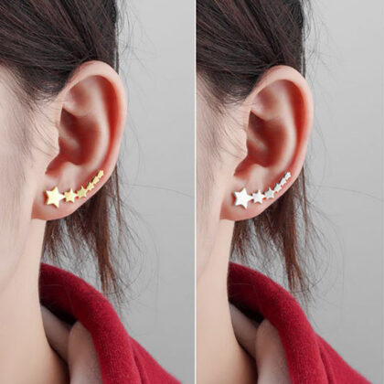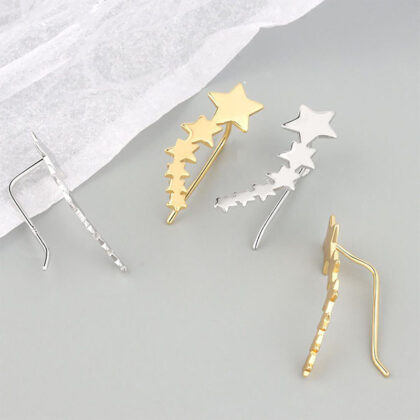 Сребърни обици, които се поставят чрез промушване и следват линията на ухото. Представляват поредица от звезди, различни по размер. С този модел може да зарадваш любимата дама, сестра или приятелка. Подари им звездни емоции и космически шик.