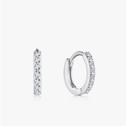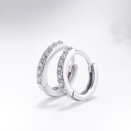 Нежни минималистични халки, покрити с блестящи камъчета кубичен цирконий, които придават завършен вид на бижуто. Изработката на обиците е изцяло сребърна, а закопчаването е тип английско. Биха могли да се съчетаят както с елегантен вечерен аутфит, така и с ежедневен тоалет. Ще зарадват жена за поводи като рожден или имен ден, или самите те ще създадат празник, подарени без причина.