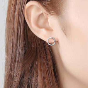 Изискани сребърни обеци във форма на кръг, украсени с деликатни блестящи кристали. Минималистичният дизайн ги прави перфектен избор за ежедневна елегантност или за изискани поводи. Те са универсален аксесоар, който лесно се съчетава с всяка визия, добавяйки изтънченост и фин блясък.