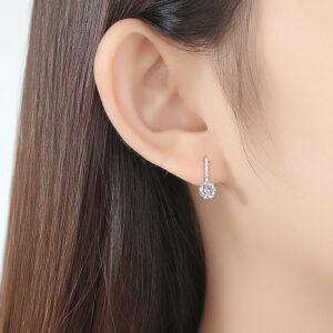 Изящни обеци със сияещ дизайн, украсени с мойсанит – камък, известен със своя блясък, надминаващ този на диамантите. Формата на цвете придава на обеците нежност и романтика, а сребърната основа допълва изтънчената им визия. Те са перфектният избор за специални поводи, като добавят елегантност и стил към всяка визия. Съчетание на лукс и изтънченост, символизират безупречното излъчване и класическата красота.