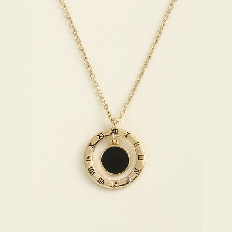 Най-ценният подарък, който можеш да дадеш на някого, е твоето време. Особено ако е под формата на красив синджир от жълто сребро. Фокусът на него обаче е кръглата сребърна форма, описваща часовник с римски цифри и декорирана с малък цирконий и черен емайл. Този изискан модел придава изтънченост и блясък на дама, като е подходящ както за специални поводи, така и за ежедневието.