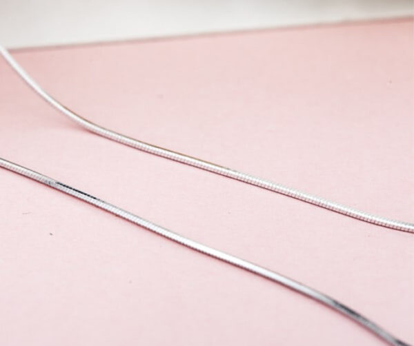 Красив сребърен синджир от прецизна змийска плетка. Бижуто е съставено от малки пръстеновидни елементи, които са плътно свързани, образувайки гладка повърхност. Закопчава се с прегъващ се механизъм, който се характеризира със здравина и функционалност, а дължината му може да се регулира според личните предпочитания. Синджирът е достатъчно атрактивен, за да се носи самостоятелно, но за по-голям ефект може да се добави и подходящ сребърен талисман. Прекрасен подарък за жена, за осми март, за годишнина, рожден ден или просто като жест на лично отношение.